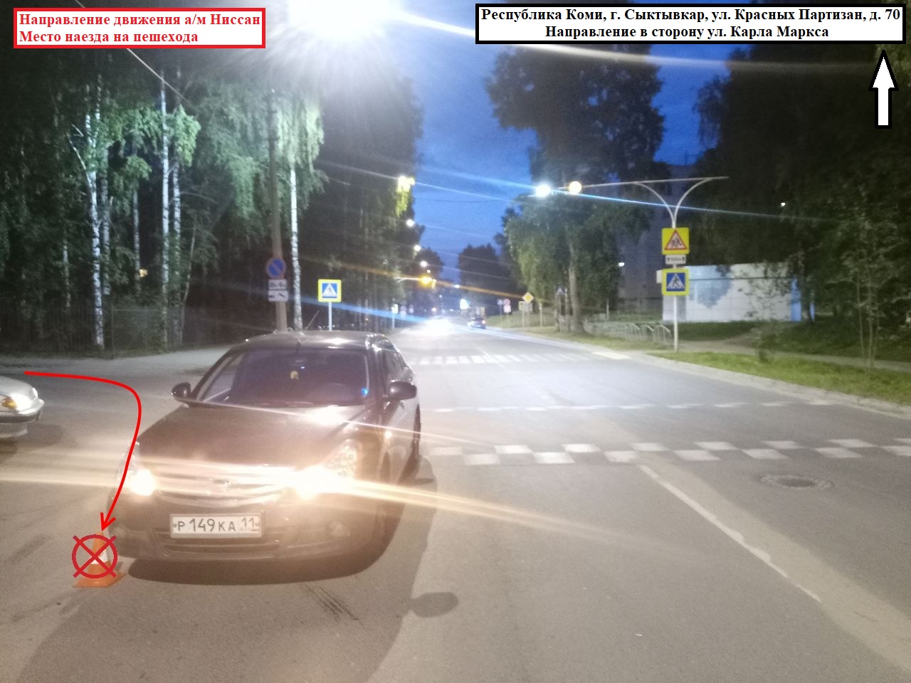 Пешеход находился на проезжей части вне пешеходного перехода.