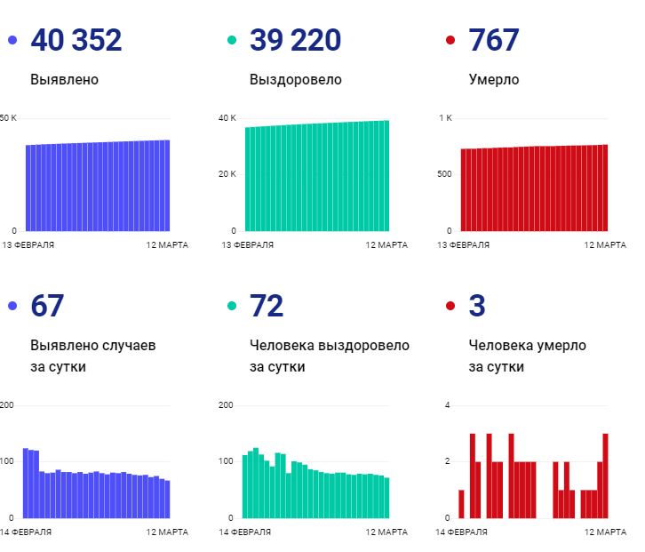 Актуальную статистику по заболеваемости опубликовал сегодня, 12 марта, стопкоронавирус.рф.