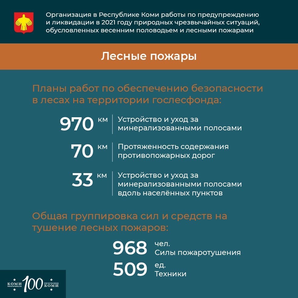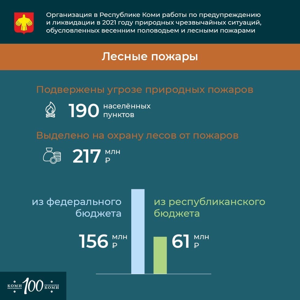 Угрозе природных пожаров подвержены 90 населенных пунктов. На охрану лесов от пожаров выделено 217 миллионов рублей (156 миллионов рублей – из федерального бюджета, 61 миллион рублей – из республиканского). Для обеспечения безопасности в лесах на территориях государственного лесного фонда будут проведены работы по: устройству и уходу за минерализованными полосами (970 километров), содержанию противопожарных дорог протяженностью 70 километров, устройство и уход за минерализованными полосами вдоль населенных пунктов - 33 километров.
