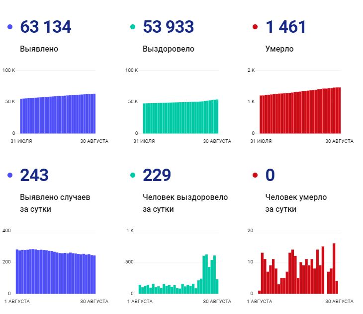 Актуальную статистику по заболеваемости опубликовал сегодня, 30 августа, стопкоронавирус.рф.