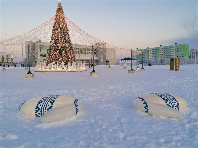 "Чудо-камни" в форме варежек с орнаментом появились у городской ёлки в Усинске. Новинкой "похвастался" руководитель администрации Николай Такаев.