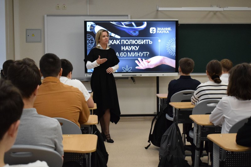 Российское общество "Знание" организовало лекцию для восьмиклассников в Лицее для одарённых детей в преддверии Дня российской науки, который отмечается 8 февраля. Занятие на тему "Как полюбить науку за 60 минут" провела министр образования и науки региона Наталья Якимова.