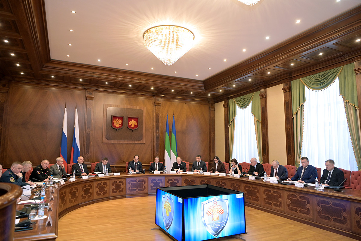 В заседании, прошедшем под председательством врио главы Республики Коми Ростислава Гольдштейна, выступили с докладами министр внутренних дел по Республике Коми Андрей Сицкий, начальник Управления Федеральной службы войск национальной гвардии Российской Федерации по Республике Коми Алексей Петренко, начальник Главного управления МЧС России по Республике Коми Алексей Пархомович.