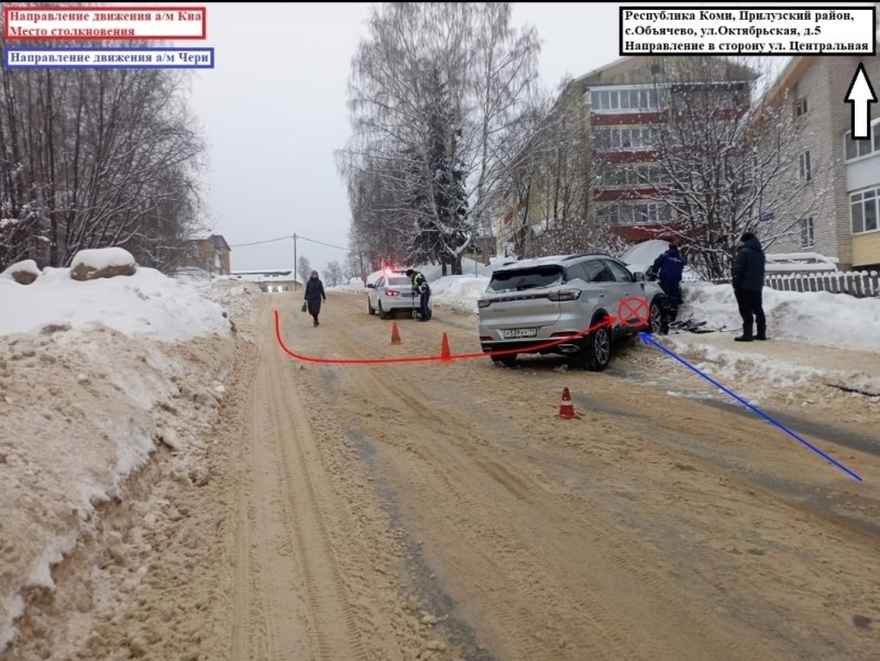 В 08:00 водитель-женщина 1985 г.р., управляя Kia , двигалась по ул.Октябрьской с.Объячево, выполняя манёвр разворота не уступила дорогу, в результате столкнулась с CHERY.