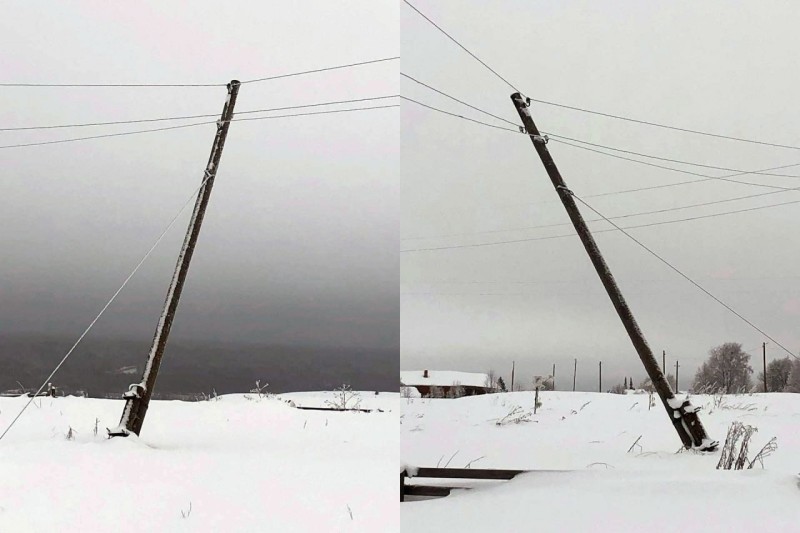 Местные жители в социальных сетях сообщили, что местечке Гутгрезд села Куратово Сысольского района возле дома пожилой женщины один из столбов ЛЭП завалился, а другой — покосился из-за натяжения проводов. Жительница уже дважды обращалась в местную администрацию.