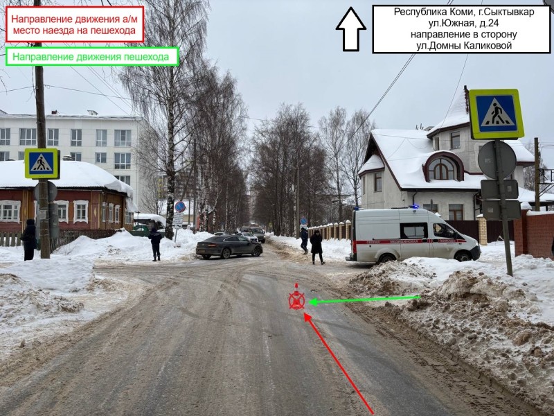 Как сообщили "Комиинформу" в Управлении Госавтоинспекции по Коми, происшествие случилось 12 февраля в 13:50. 40-летний мужчина, управляя автомобилем Volkswagen Arteon, двигался по ул.Южной со стороны ул.Колхозной в направлении ул.Домны Каликовой. Напротив дома №24 по ул.Южной водитель иномарки сбил пешехода, который переходил проезжую часть по нерегулируемому пешеходному переходу справа налево по ходу движения авто.
