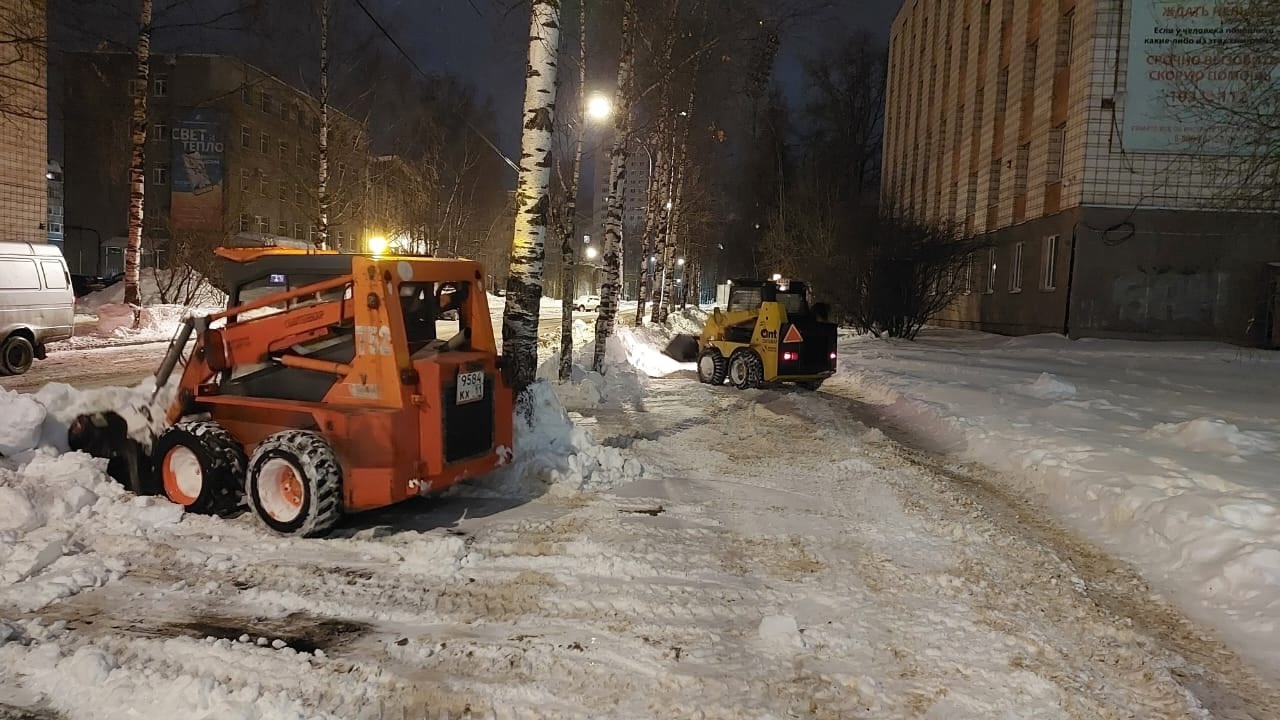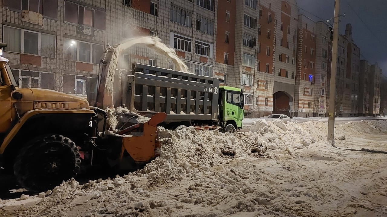 Только за ночную смену коммунальщики вывезли снег с 10 улиц, расчистили и расширили проезжую часть на восьми, не оставили без внимания и тротуары.