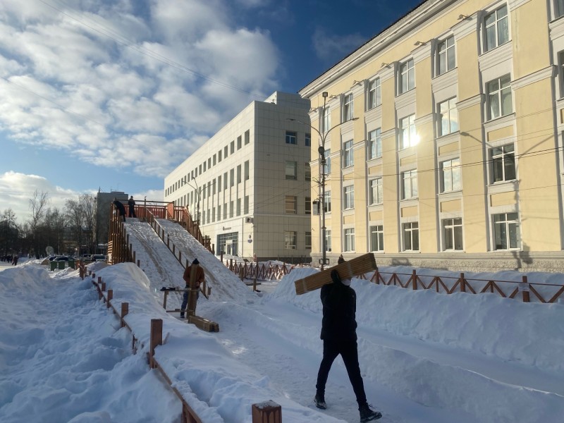 В Сыктывкаре 13 февраля начали разбирать гигантскую горку на Стефановской площади. В настоящее время работники только приступили к демонтажу аттракциона.