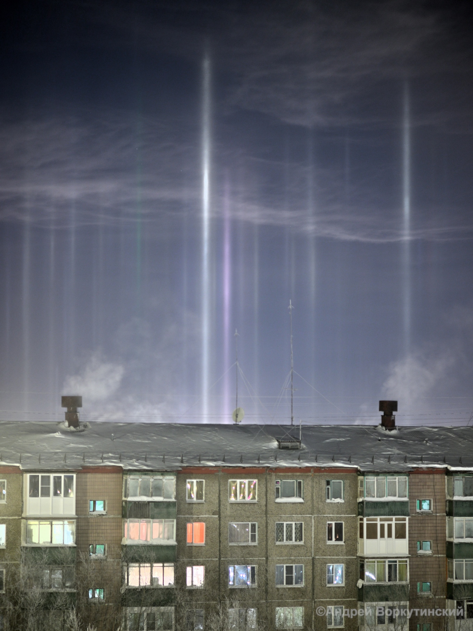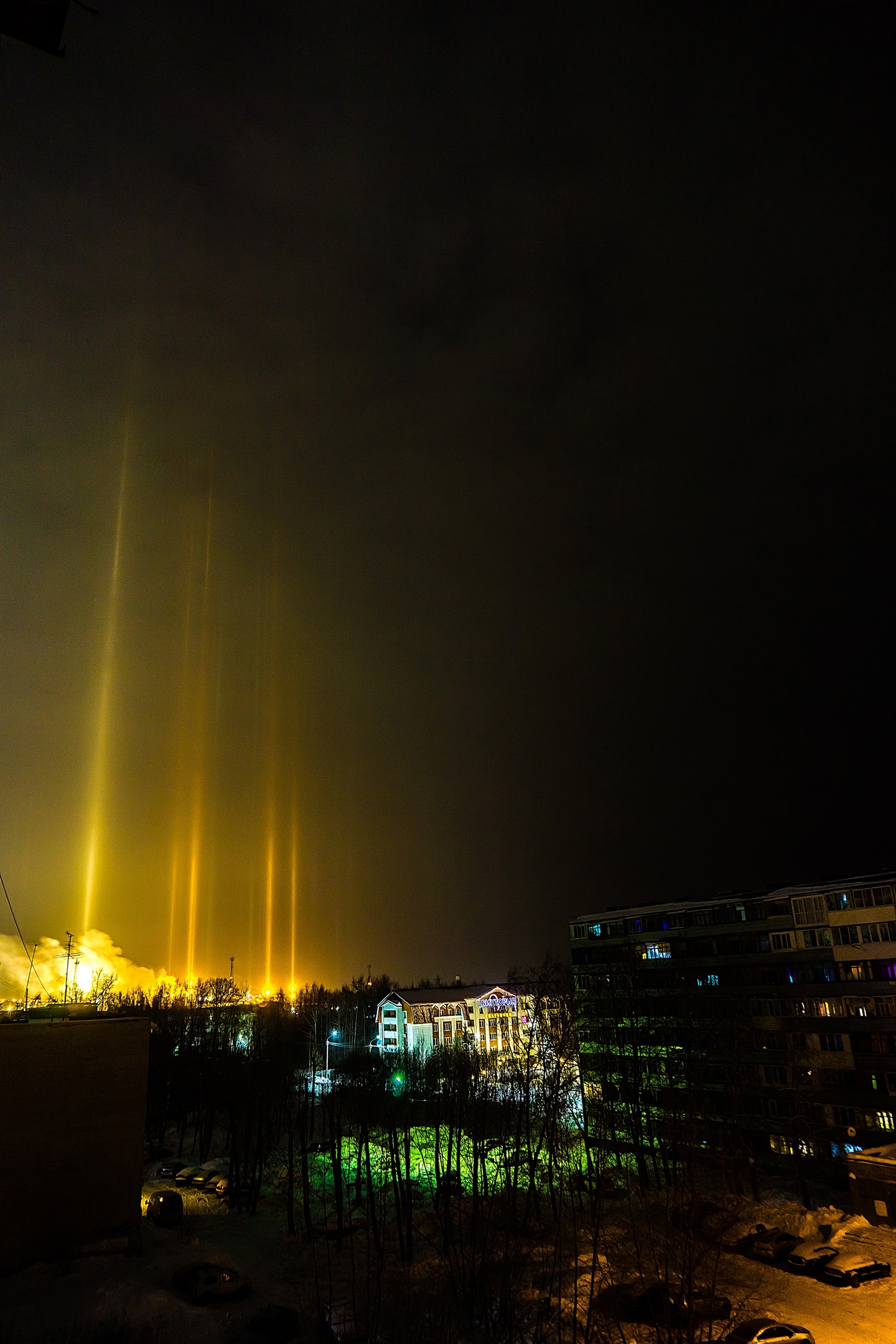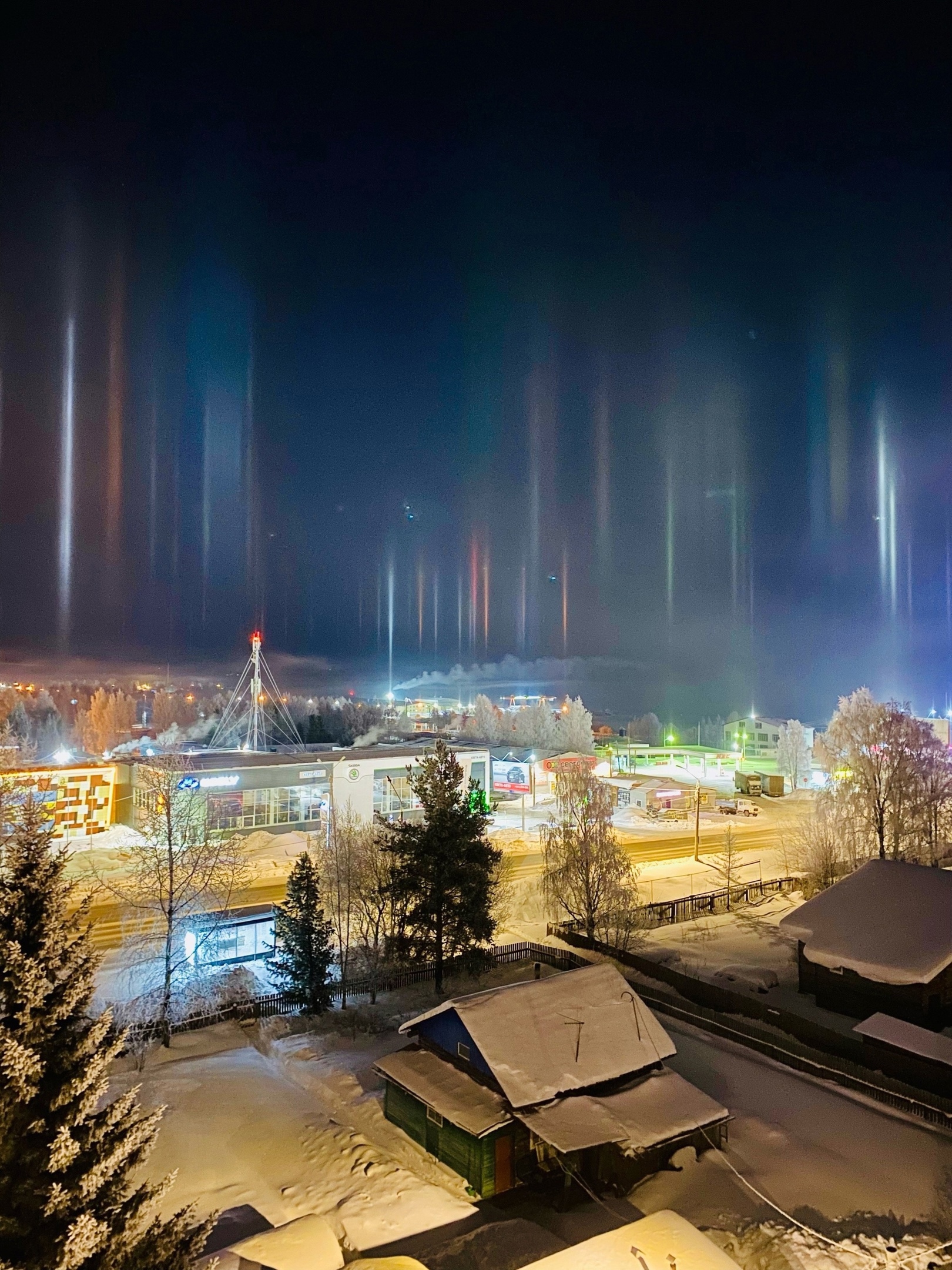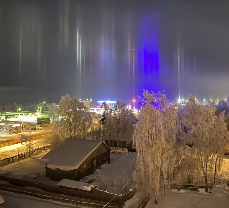 Жители Сыктывкара и Воркуты на днях заметили редкое природное явление: световые столбы.