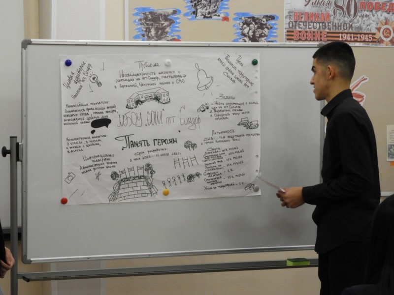 По итогам защиты молодёжных проектов был выявлен победитель – проект "Память героям", разработанный учащимися школы посёлка Синдор. Молодые люди получили сертификат Министерства национальной политики размером в 100 тысяч рублей, на которые будет расширена школьная аллея памяти: к уже существующим табличкам ветеранов Великой Отечественной добавятся имена героев Афганской войны, двух чеченских кампаний и специальной военной операции.