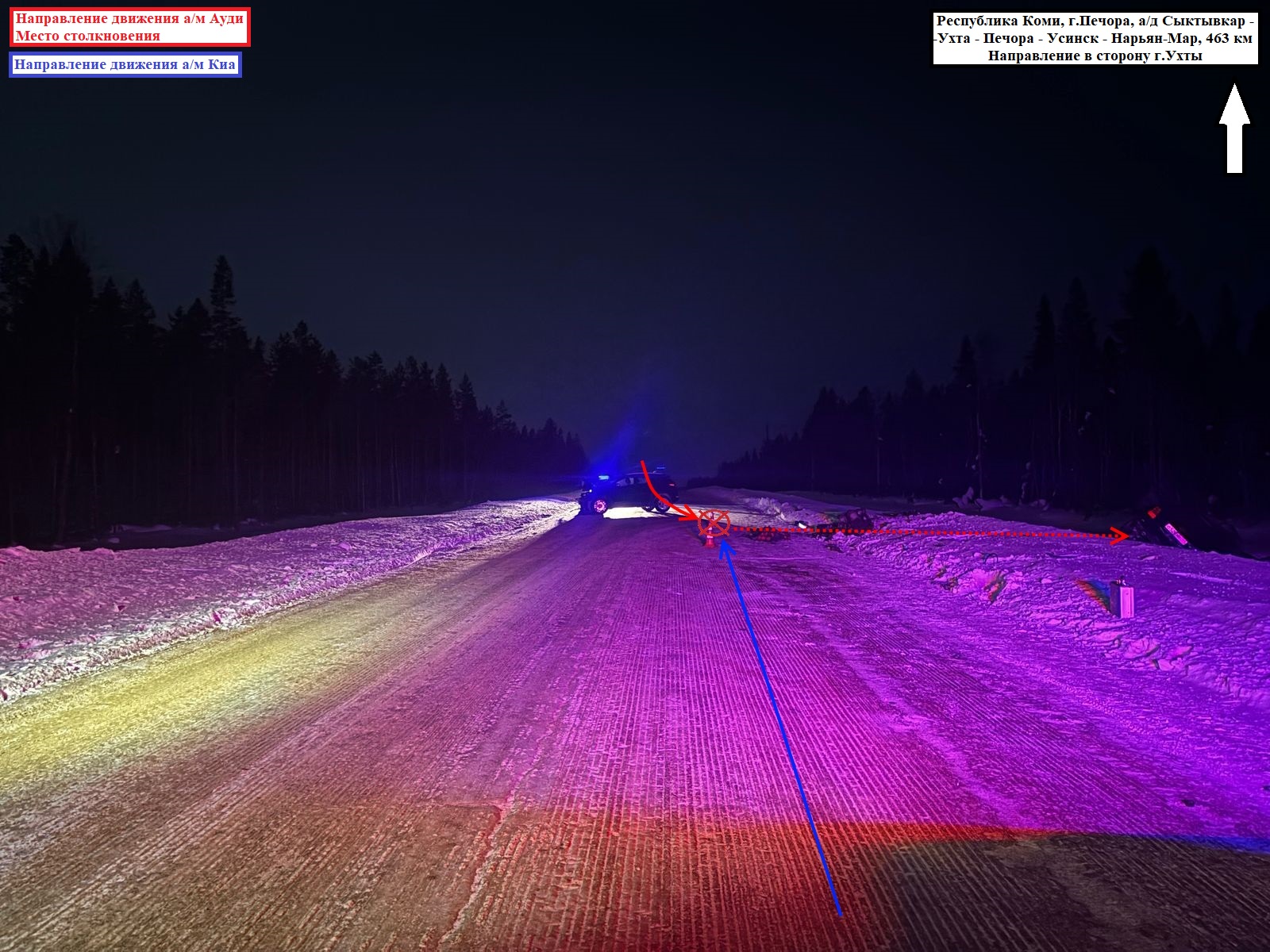 По данным, ГАИ Коми, 13 марта в 17:30 на 463 км трассы Сыктывкар - Нарьян-Мар водитель Audi не справился с управлением, выехал на встречную полосу, где столкнулся с Kia Sportage.