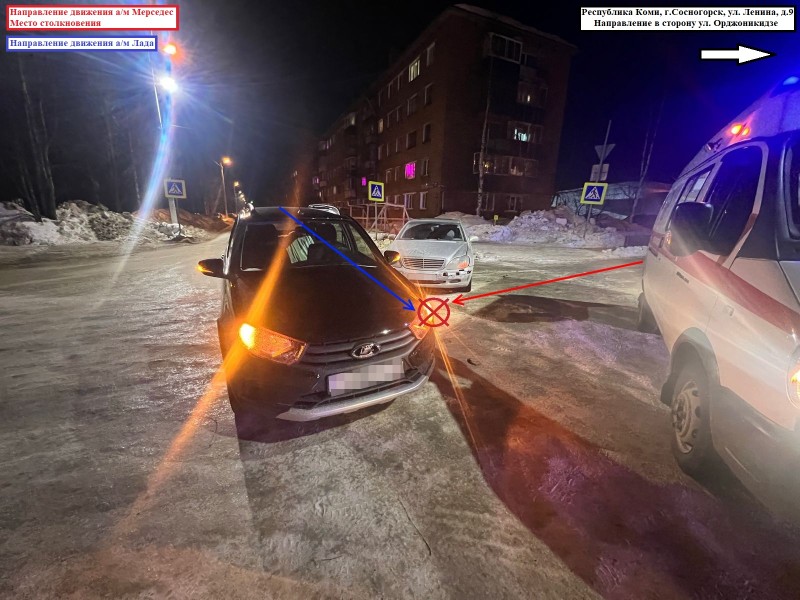 В Сосногорске столкнулись Mercedes и Lada Granta.