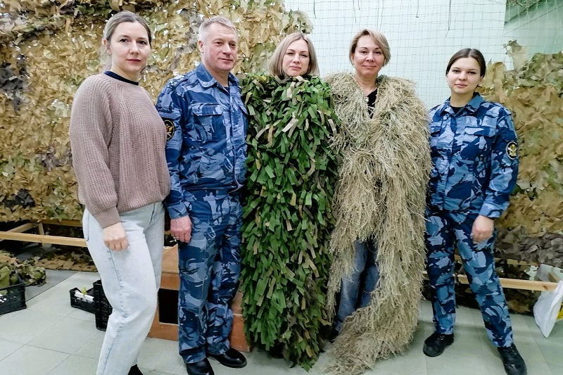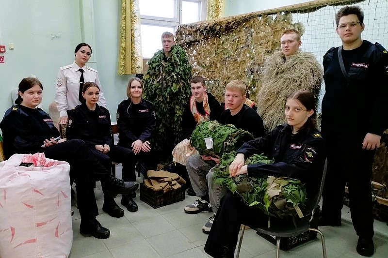 Волонтеры также провели для сотрудников и учащихся мастер-класс, в рамках которого обучили основам плетения сетей и изготовления маскировочного костюма "Кикимора".