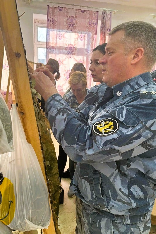 При проведении экскурсии кадетам и сотрудникам УИС были продемонстрированы изделия, изготавливаемые волонтерами: маскировочные и противодроновые сети на технику и блиндажи, тактические носилки, пятиточечники, маскировочные костюмы для снайперов "Кикимора", дождевые маскировочные плащи, окопные свечи.