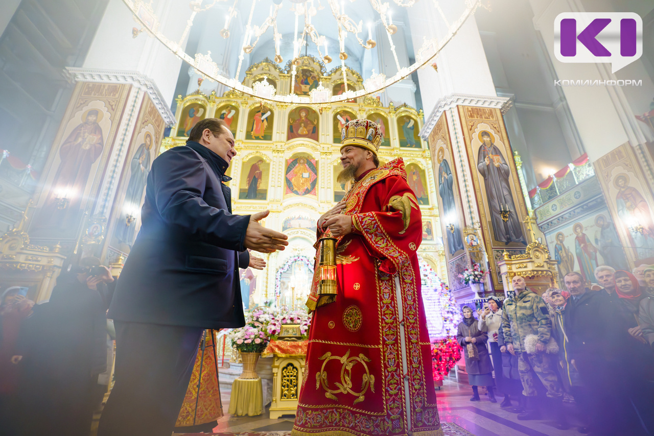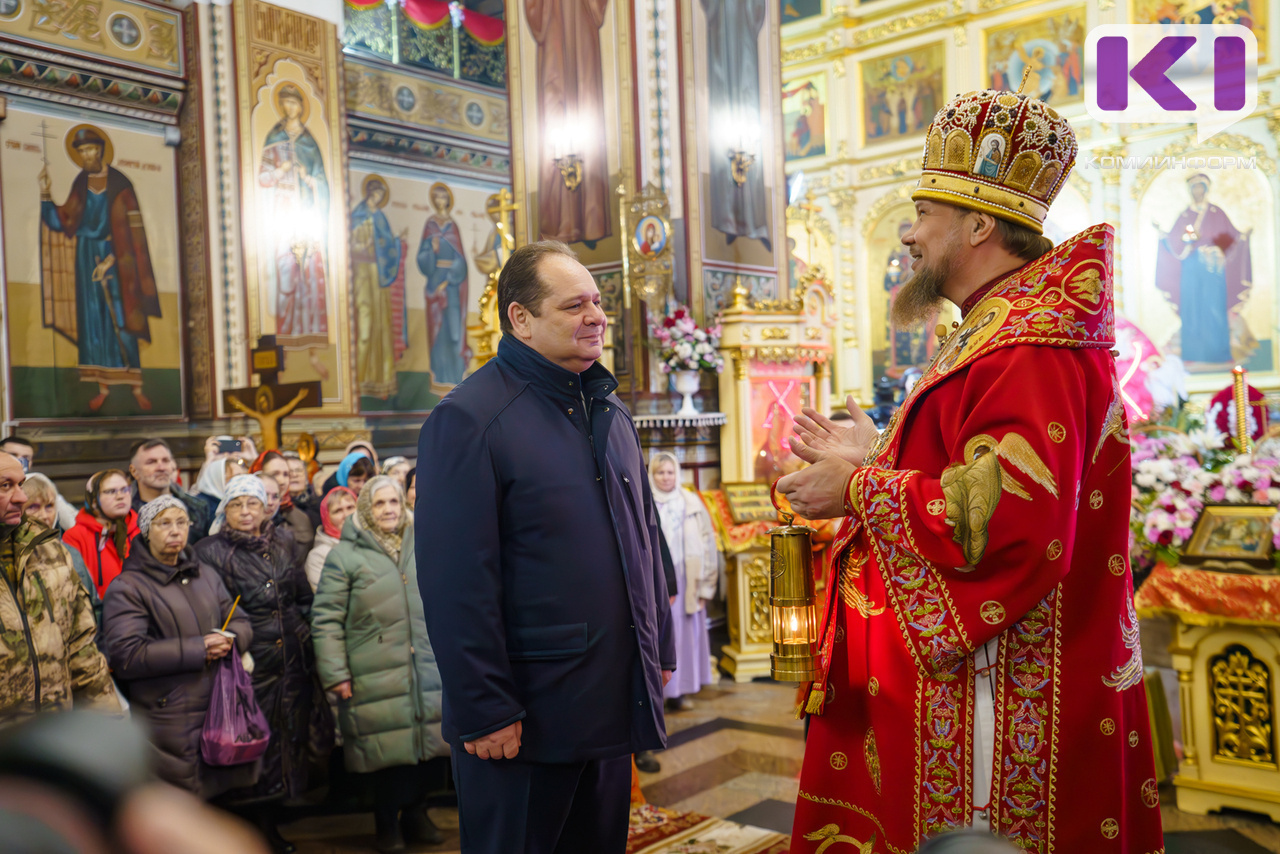 "Дай бог, осенью вы станете постоянным главой. Я рад, что вас наставляет этот огонь, чтобы Коми земля стала чище и богаче. Мы заботимся о республике, пусть и у вас все будет, и мудрость. Христос воскресе!" - сказал архиепископ Питирим.