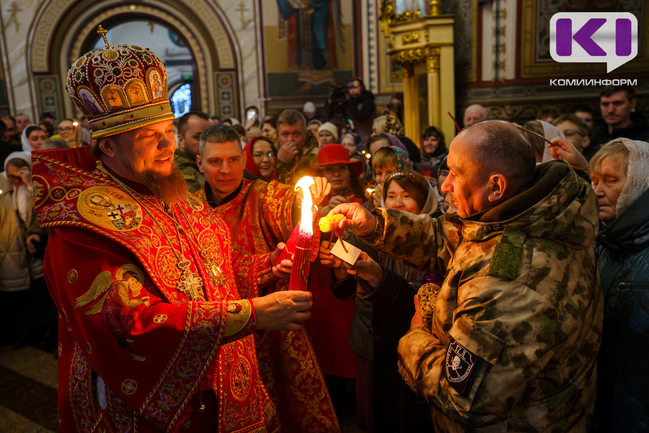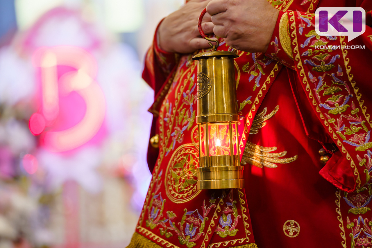 В 2:33 врио главы Коми Ростислав Гольдштейн привез в собор Благодатный огонь из Москвы.