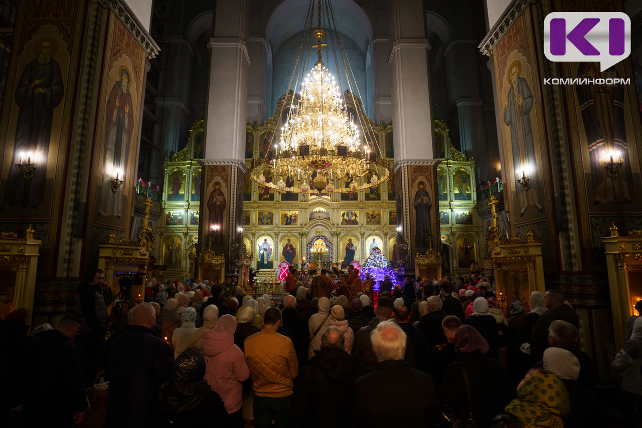 Окунуться в Пасхальную службу жители Коми смогли и благодаря трансляции из Свято-Стефановского кафедрального собора, где 19 апреля в 23:30 началось главное богослужение года, которое возглавил архиепископ Сыктывкарский и Коми-Зырянский Питирим.