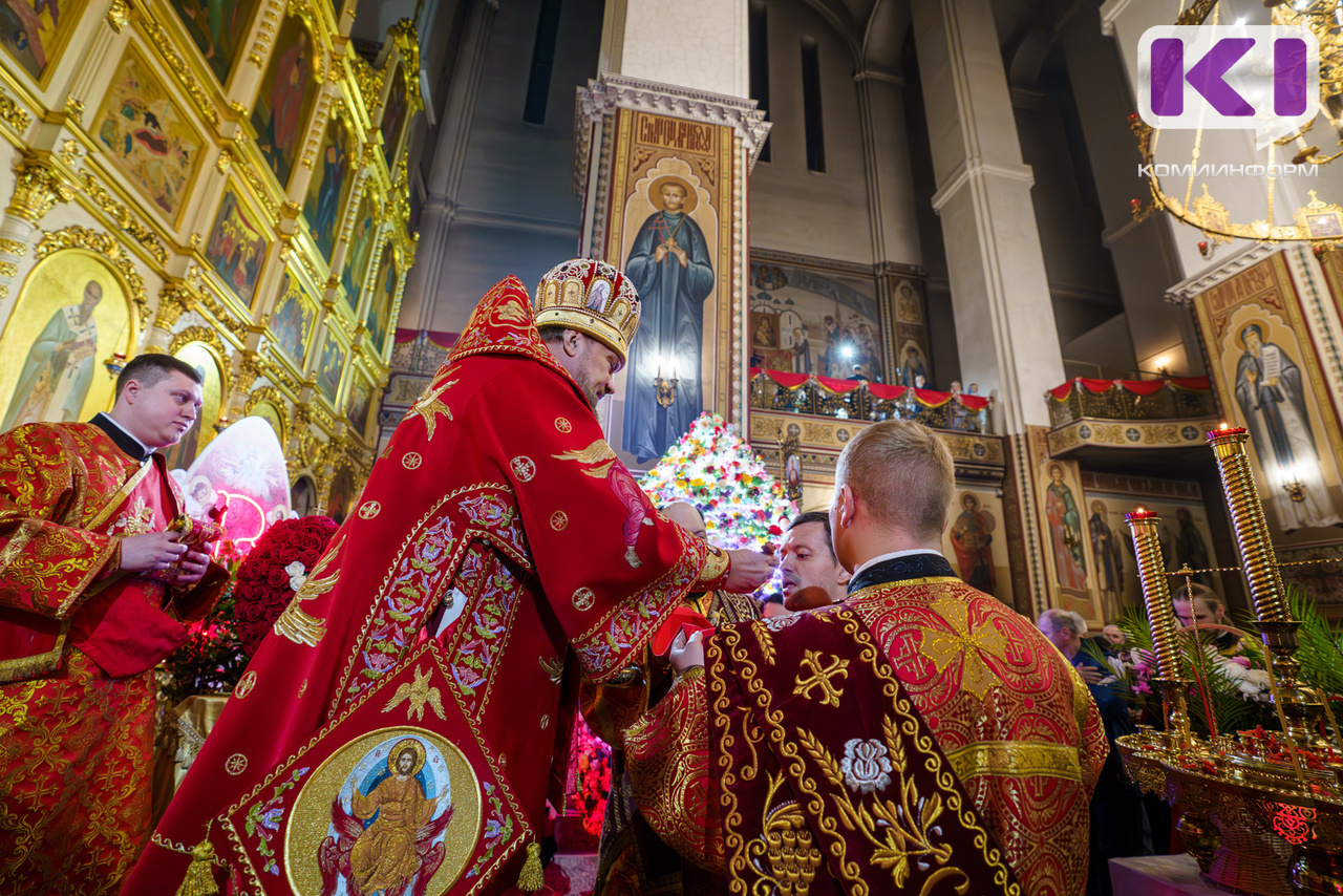 Архиепископ Сыктывкарский и Коми-Зырянский Питирим напомнил, что каждый год огонь в храм по традиции приносит власть, и Р.Гольдштейн свой год начал здесь.