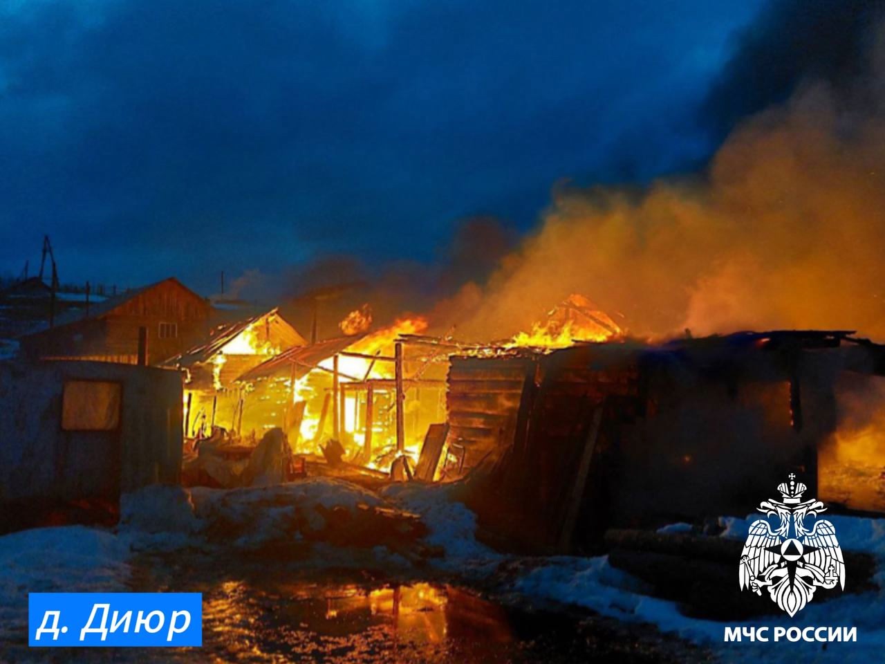 В Ижемском районе, д. Диюр, пожар в надворной постройке по улице Набережная ликвидирован на общей площади 200 квадратных метров.