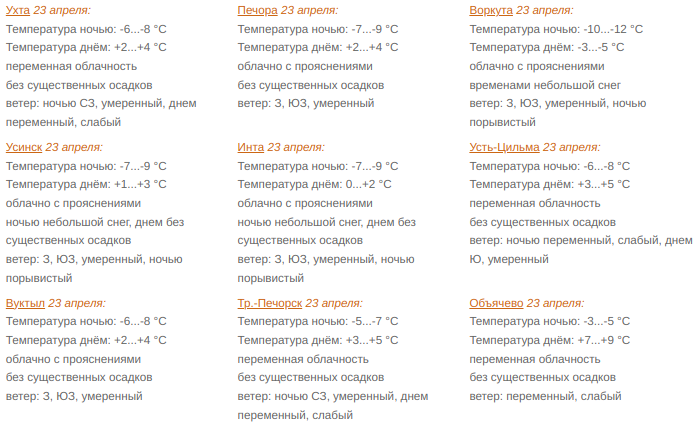 Прогноз погоды по республике на 23 апреля дает Коми ЦГМС.