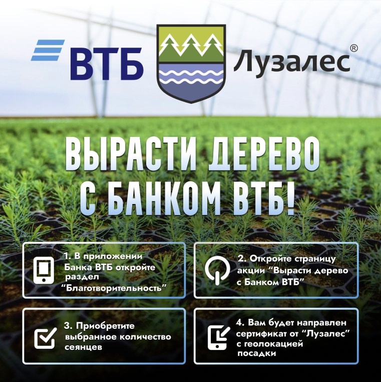 Компания "Лузалес" совместно с Банком ВТБ приглашает всех желающих принять участие в масштабной акции по восстановлению лесов Республики Коми и внести свой вклад в озеленение родного края.