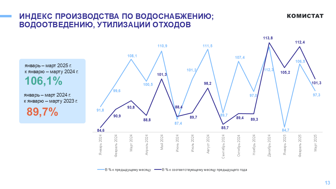 На 6,1% увеличились объемы производства в отрасли, обеспечивающей водоснабжение, водоотведение, организацию сбора и утилизации отходов.