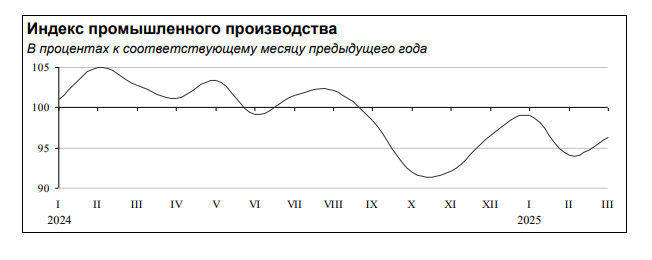 В марте 2025 года индекс промышленного производства в регионе составил 96,3% относительно марта 2024 года. За первые три месяца текущего года показатель снизился до 96,5%, тогда как в январе-марте 2024 года он находился на уровне 102,9%.