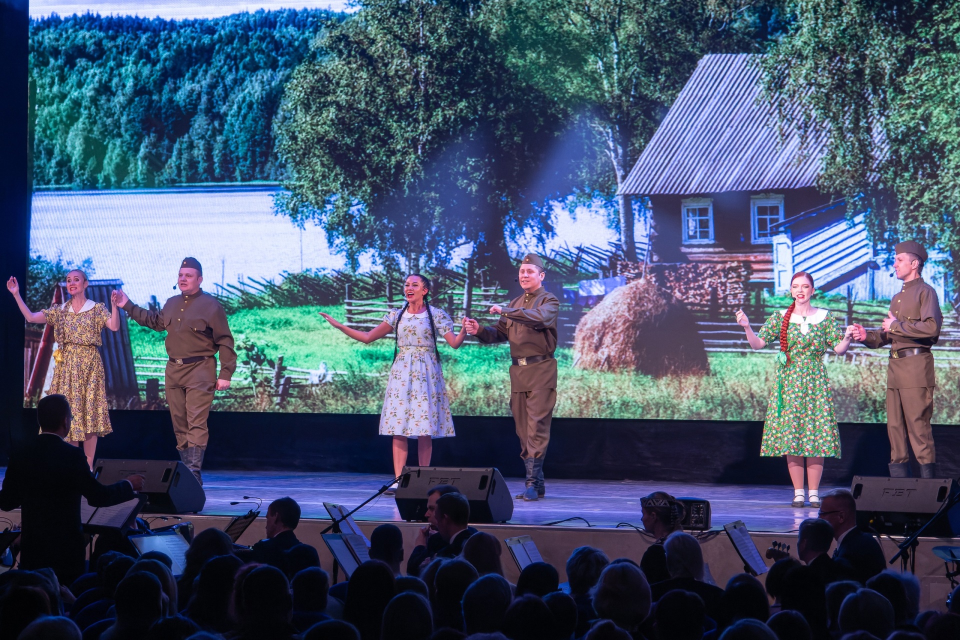7 мая на сцене Академического театра оперы и балета Республики Коми, и 8 мая на сцене Коми республиканской академической филармонии солисты и коллективы учреждений культуры региона представят вокальные, хореографические и литературные композиции, в том числе созданные специально для праздничного концерта, посвященного Дню Великой Победы. Прозвучат самые известные песни военного времени, связанные в одно большое театрализованное повествование, режиссером которого выступил Алексей Полубояров. Оно проведет зрителей по фронтовым дорогам от "того самого длинного дня в году" - 22 июня 1941 года до победного мая 45-го года. Особой частью концерта станет рассказ о вкладе Республики Коми в общее дело Победы - оленно-транспортных батальонах.