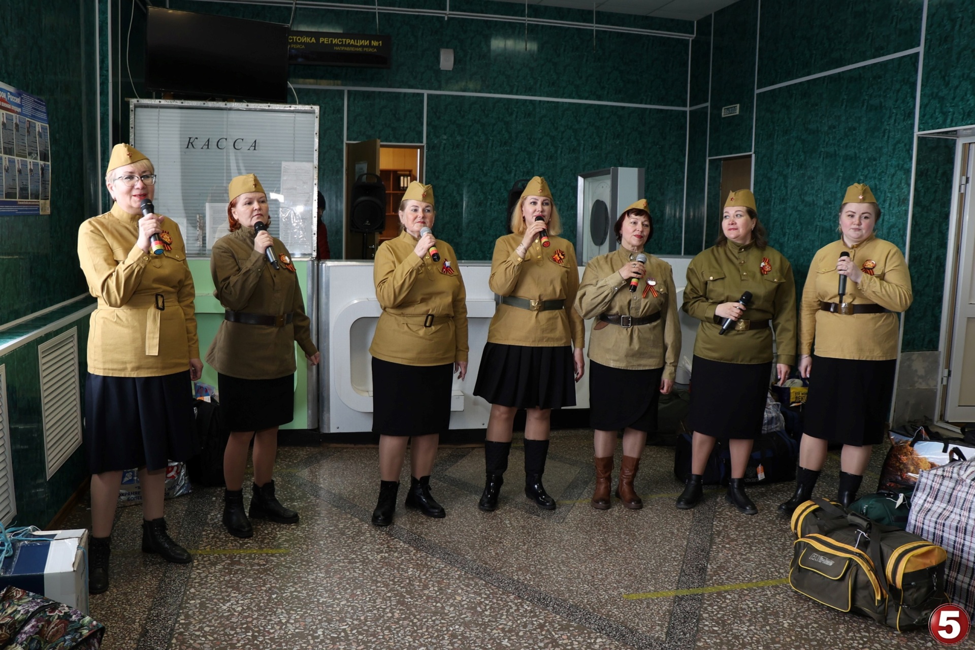 Раздача ленточек также прошла в ходе акции "Песни Победы" на железнодорожном вокзале. Коллектив "Девчата" Центра национальных культур спел перед пассажирами, ожидающими посадки на рейс, после чего присутствующим раздали георгиевские ленты и праздничный выпуск газеты "Победный май".
