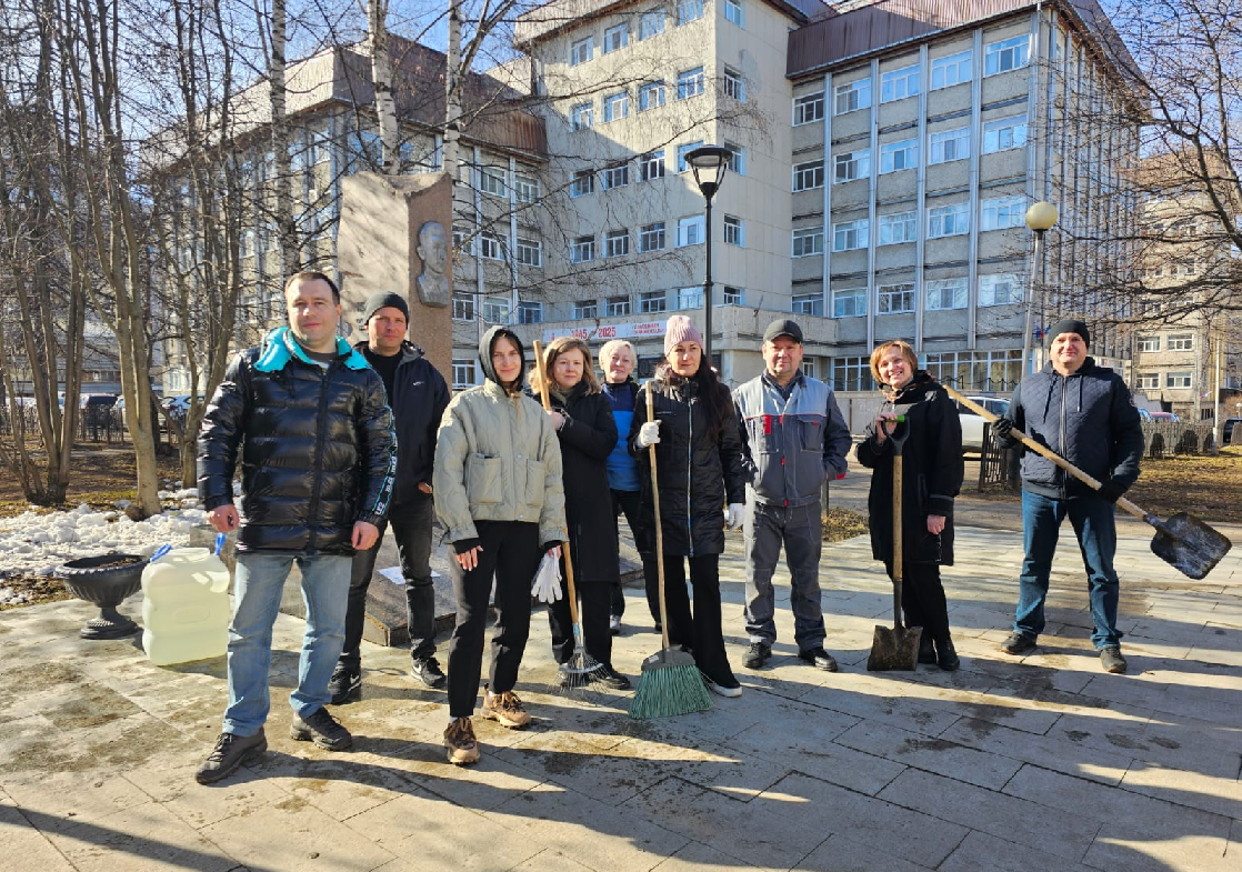 Коллектив ТПП подготовил мемориал к празднику: провел на территории субботник. Помимо уборки мусора и прошлогодней листвы, очищены обелиск и гранитная брусчатка, переведены в порядок скамейки.