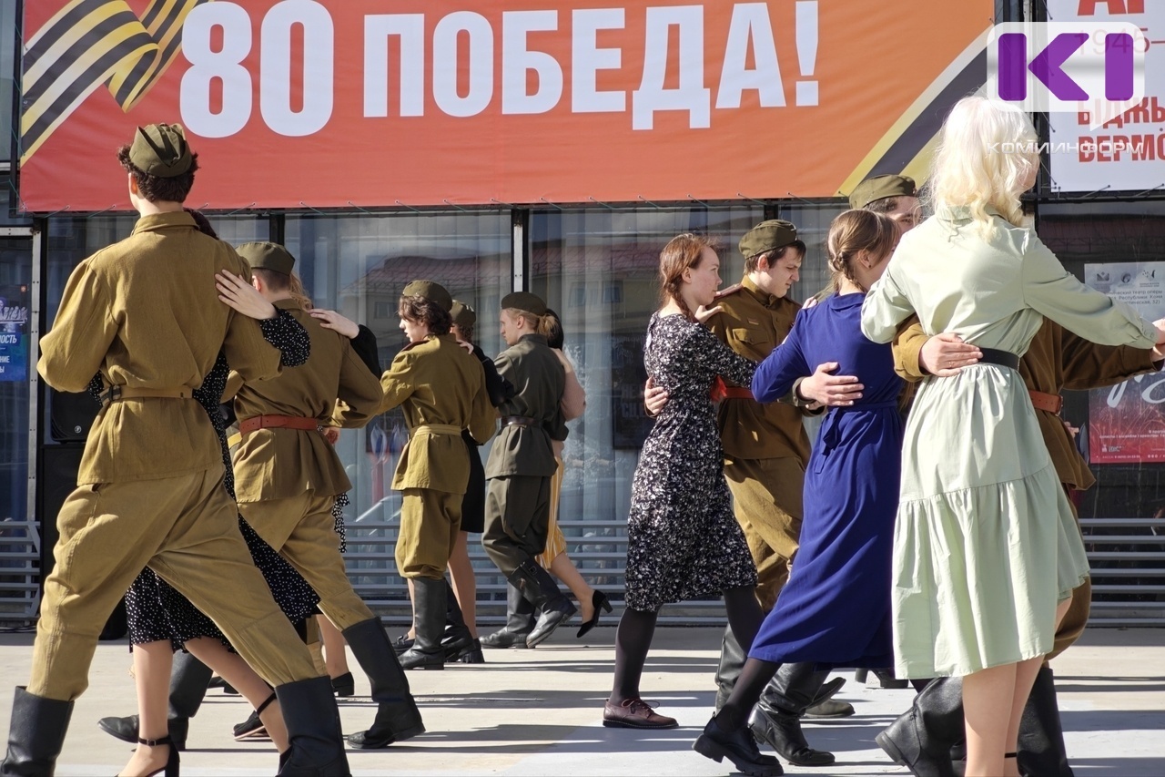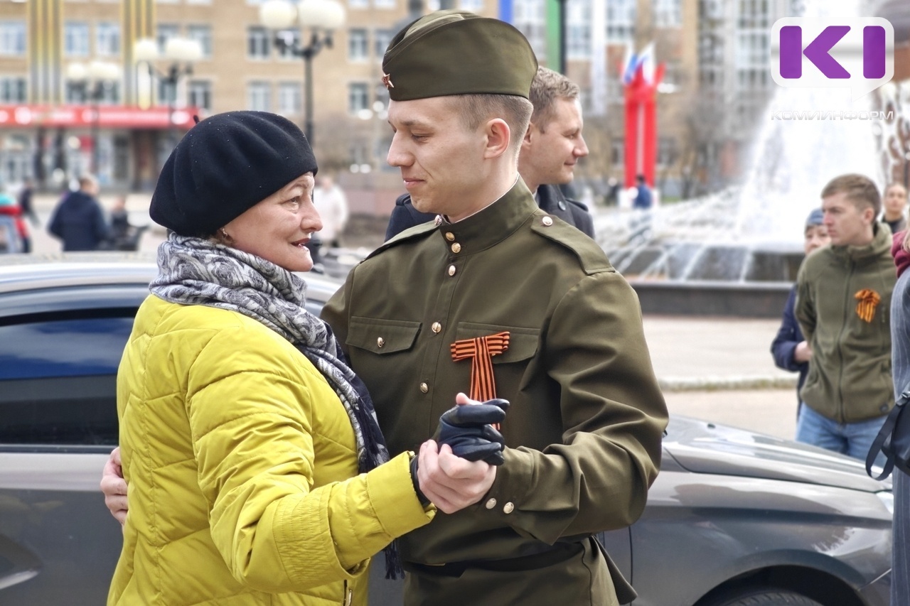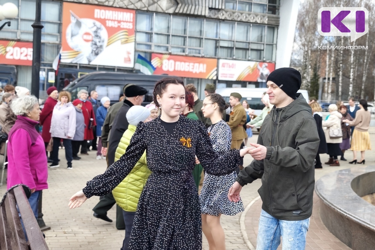 В Сыктывкаре состоялась ежегодная акция "Случайный вальс", в рамках которого молодежные организации Сыктывкара знакомят горожан с мелодиями и танцами времен Великой Отечественной войны.