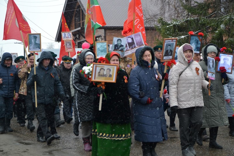 С фотографиями своих близких встали в строй "Бессмертного полка" многие жители села. В рядах "Бессмертного полка" бок о бок стояли взрослые и дети, которые хранят память о подвиге. У каждого на портрете свой герой.