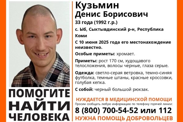 Волонтеры просят сообщать любую информацию о пропавшем по телефону горячей линии 8-800- 700-54-52 (бесплатно на территории РФ) или 02.