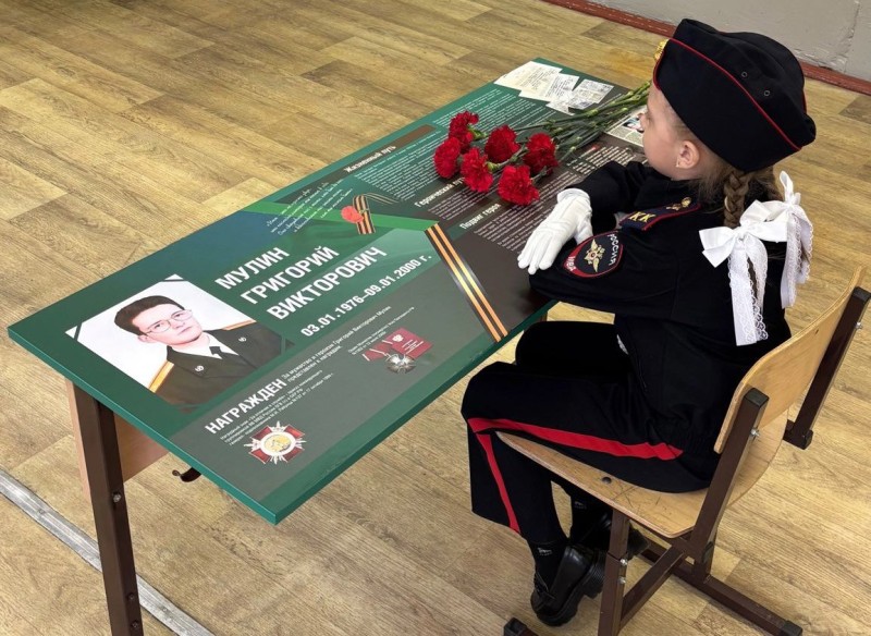 В рамках 80-летия Великой Победы во 2 "А" кадетском классе открыли парту Героя в честь военнослужащего лейтенанта Григория Мулина, погибшего при исполнении воинского долга, сообщает пресс-служба Управления Росгвардии по Коми.