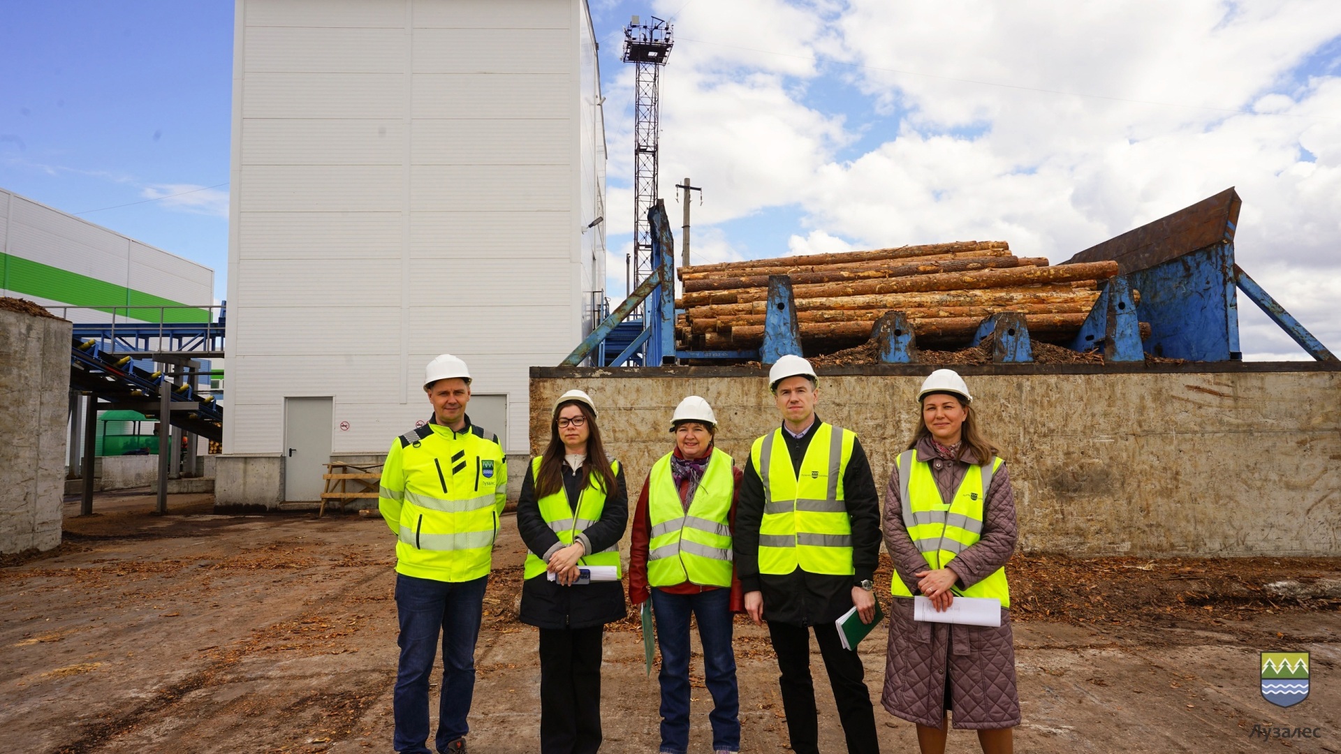 На участке деревообработки "Човью" гости ознакомились с работой окорочного станка, осмотрели линии лесопиления и сортировки, сушильный комплекс, посетили пеллетный завод и мини-ТЭЦ.