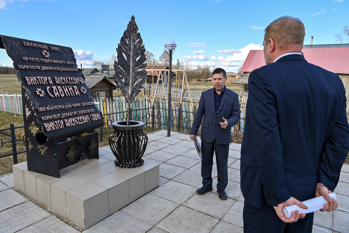 В ходе рабочей поездки в Корткеросский район врио главы Республики Коми посетил памятный знак и сквер на месте родительского дома писателя Виктора Савина в селе Нёбдино.