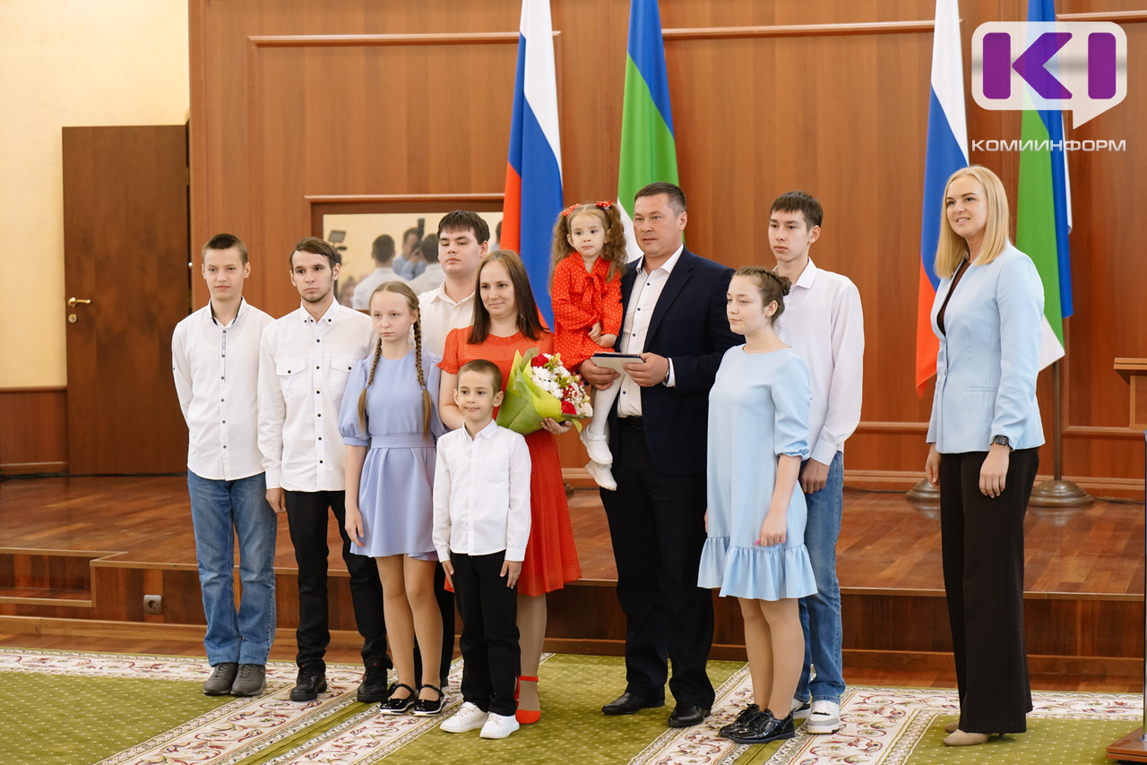 Семьи, представленные к награждению медалью Республики Коми "За достойное воспитание детей": семья Косныревых – 8 детей (Прилузский); семья Блохиных – 6 детей (Эжвинский район Сыктывкара); семья Шерматова Исы и Таджиевой Барчинай – 5 детей (Воркута).