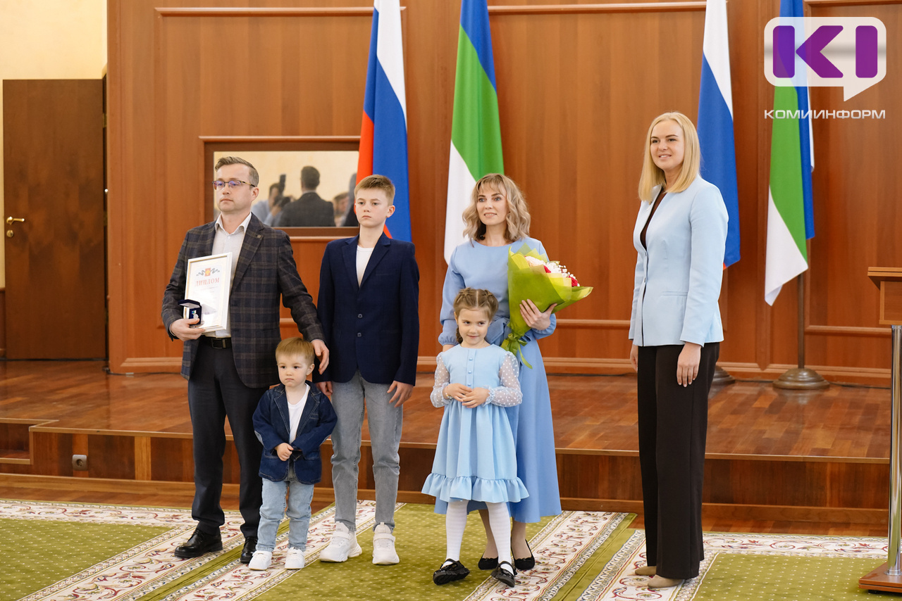 В Международный день семьи в Сыктывкаре прошла торжественная церемония награждения восьми многодетных семей: три семьи получили почетную медаль Коми "За достойное воспитание детей", а пять семей были удостоены премии правительства региона за сохранение традиционных семейных ценностей и достойное воспитание детей.