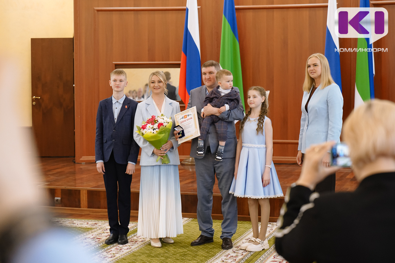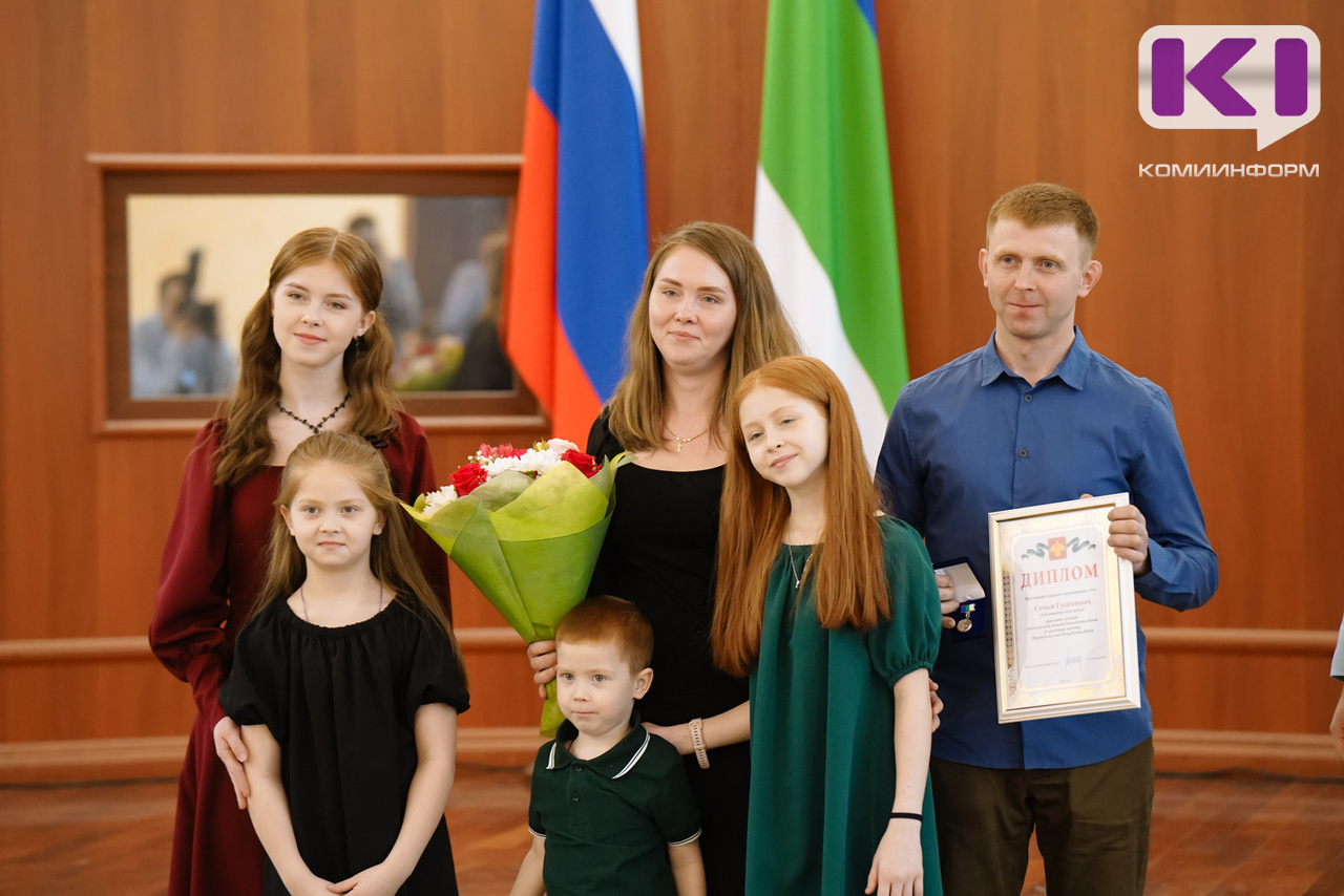 Почетной медалью Республики Коми "За достойное воспитание детей" отмечены три многодетные семьи региона. Так, среди награжденных - семья Шерматова Исы и Таджиевой Барчинай из Воркуты, которая воспитывает пятерых детей, в семье Блохиных из Эжвинского района Сыктывкара растят шестерых детей, а в семье Косныревых из Прилузского района - восьмерых детей.