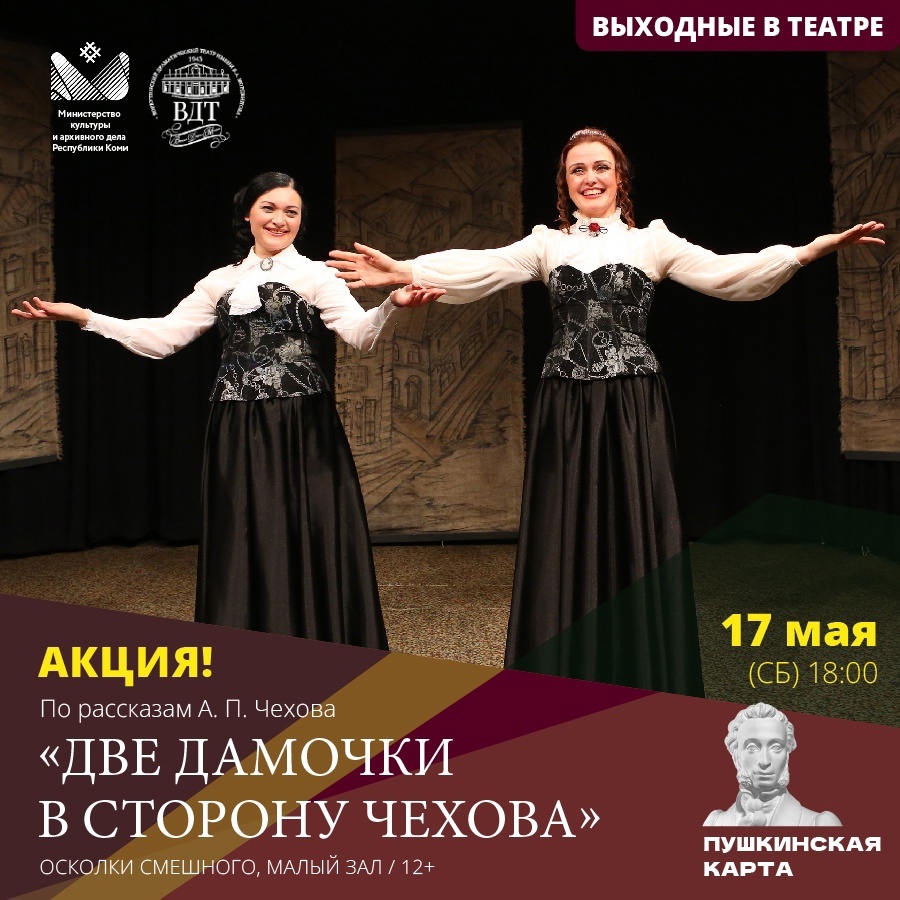 Воркутинский драматический театр имени Б.А. Мордвинова в 18:00 покажет спектакль "Две дамочки в сторону Чехова" (+12).
