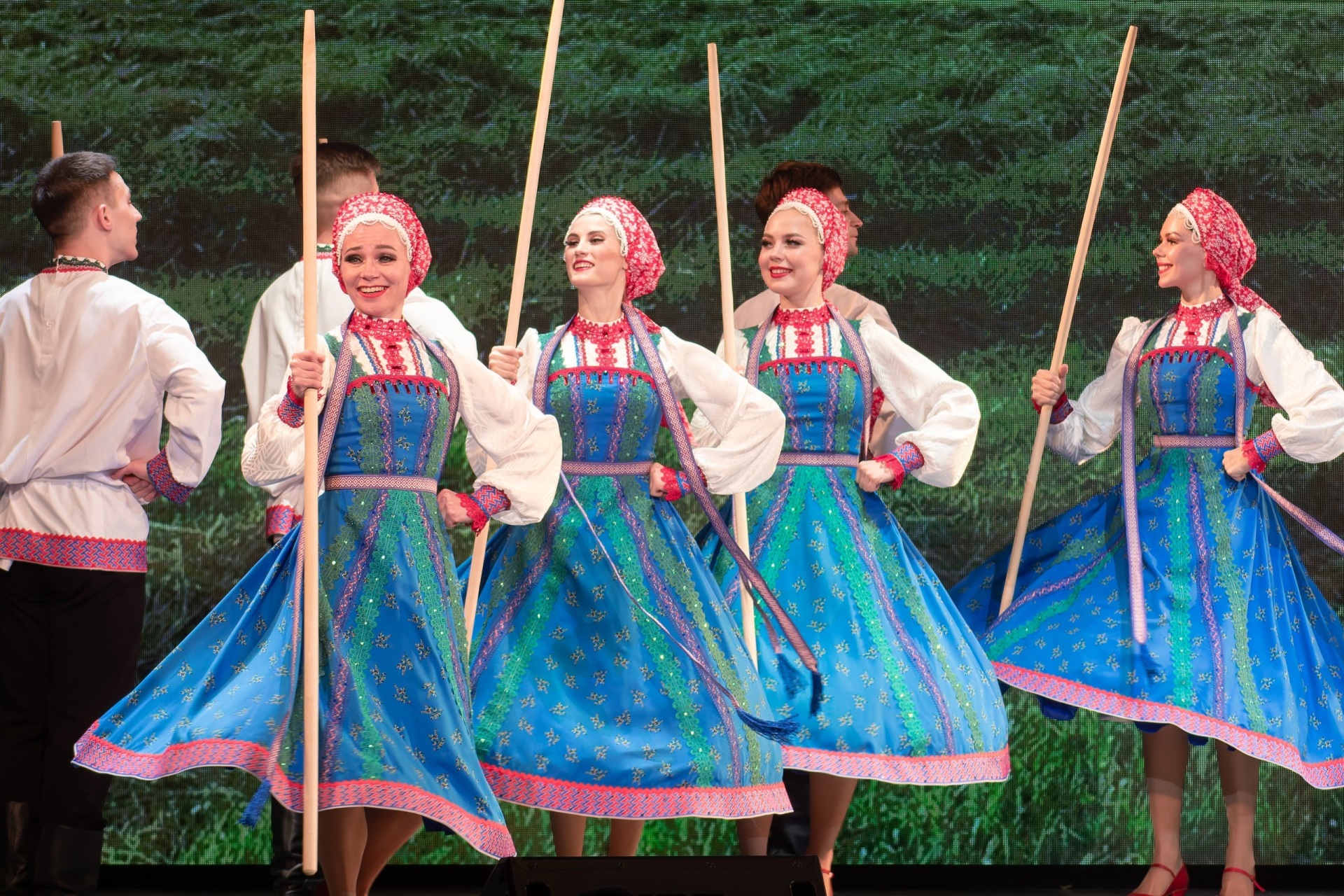 Особенно публика рукоплескала мастерству танцоров ансамбля. Они примеривали роль и бравых охотников, и трудолюбивых сенокосцев, выполняя сложнейшие акробатические элементы, которые заставляли то и дело внутренне восклицать: "Как такое вообще возможно?". Профессиональные трюки и поддержки, которые кажутся буквально невозможными, стали настоящим украшением выступления и визитной карточкой ансамбля. Однако за этим впечатляющим результатом стоят долгие месяцы упорных тренировок и кропотливой работы. Тысячи повторений каждого элемента, оттачивание техники и совершенствование мастерства – все это осталось за кулисами.