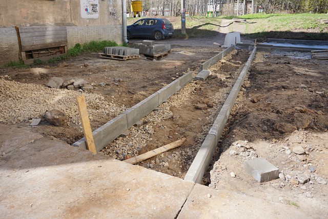На сегодня завершен демонтаж старого покрытия проезда и тротуара, установлены новые бортовые камни. Начаты работы по укладке дорожной одежды.