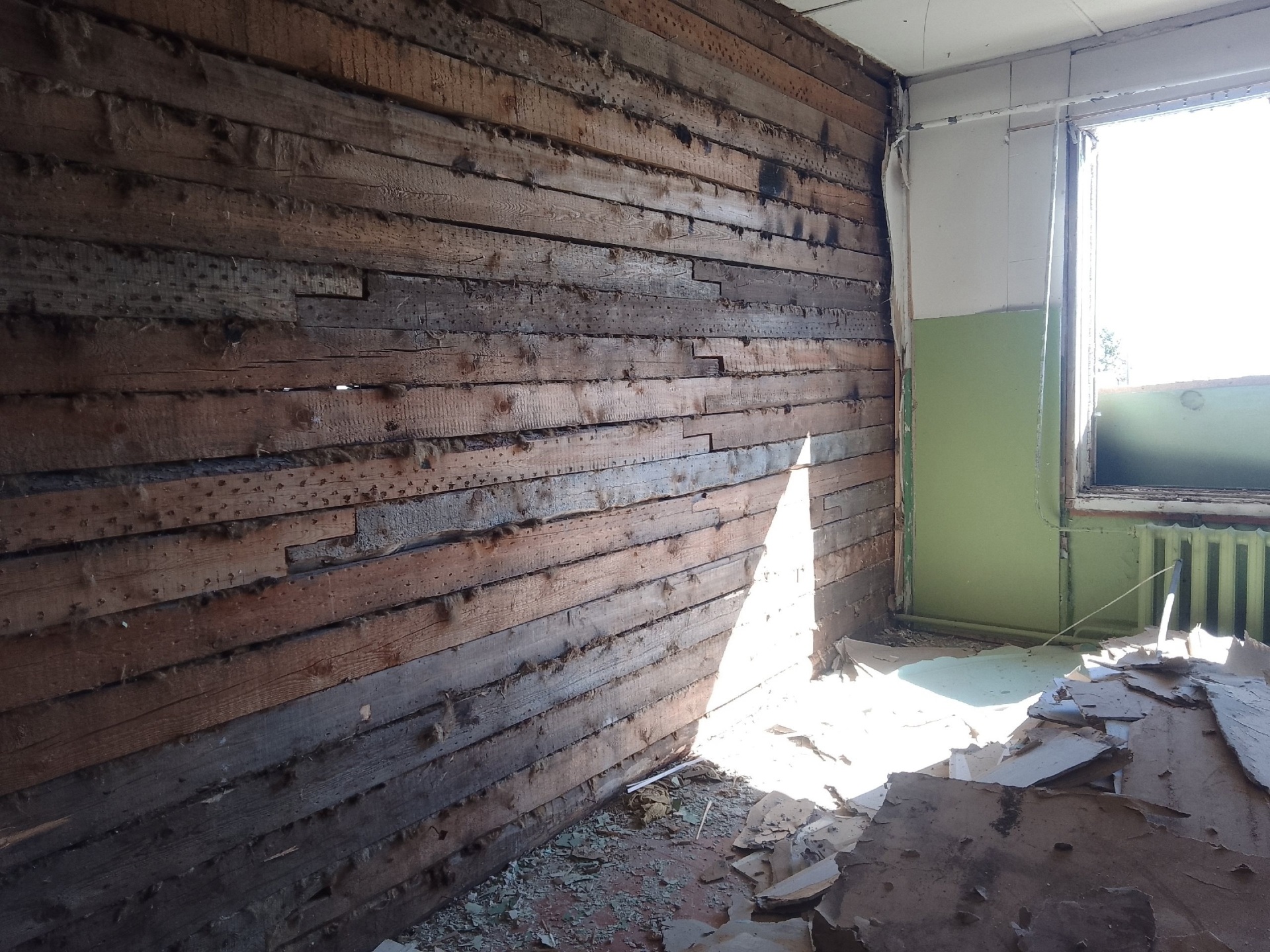 На данный момент строители выполнили отбивку штукатурки фасада перехода (галереи) из здания школы в здание пришкольного интерната, частичный демонтаж внутренней обшивки и полов крыла интерната. Ремонт должен быть завершен до конца года.