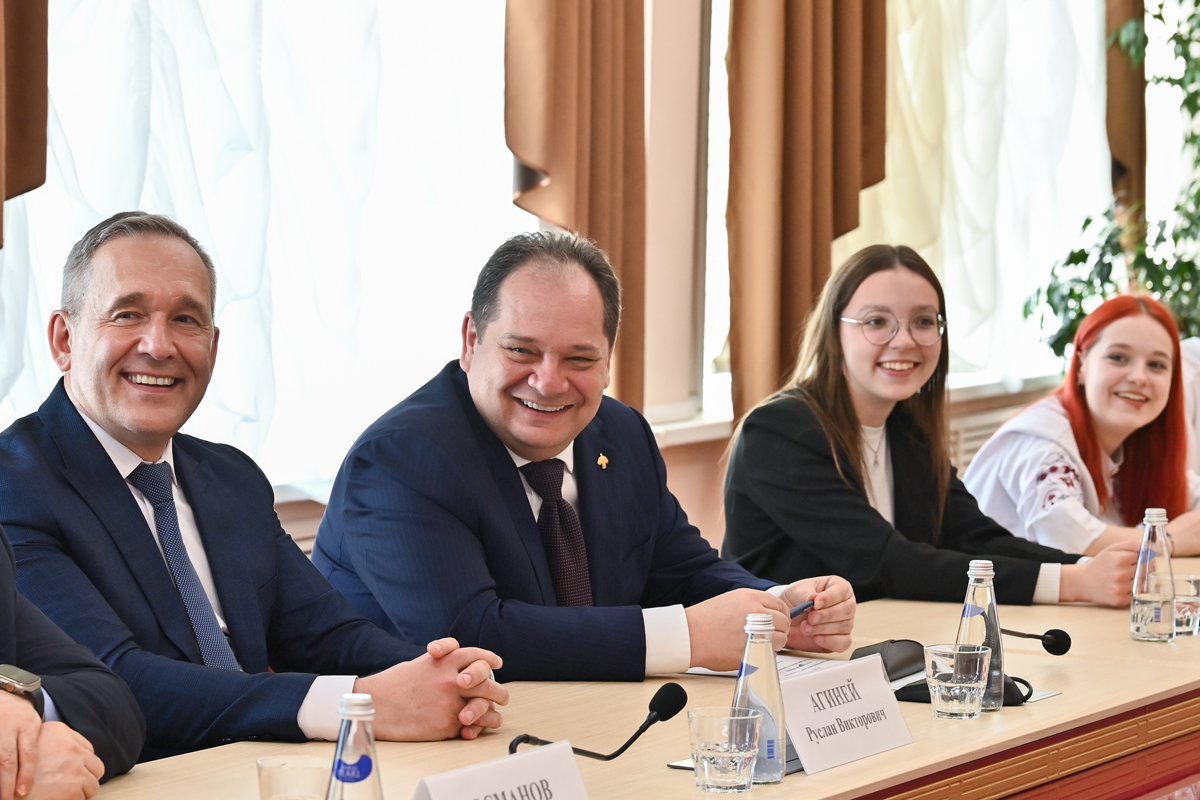 Ректор УГТУ Руслан Агиней поблагодарил Ростислава Гольдштейна за открытый диалог: "Эти искренние обсуждения – стартовая точка для новых совместных проектов. Уверен, такой формат вдохновит наших студентов на реализацию самых смелых замыслов".