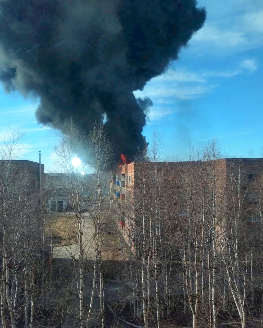 Как сообщает администрация Инты, 27 мая во время проведения капитальных ремонтных работ на кровле дома №2 по улице Горького начался пожар. Загорелся уже поднятый на крышу материал подрядчика.