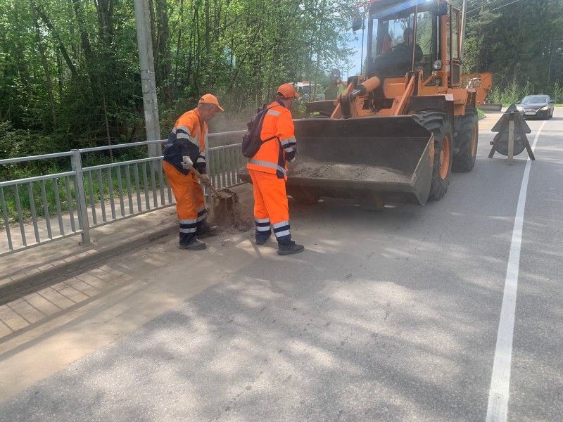 Для поддержания чистоты дорожных покрытий ежедневно проводится механизированное подметание. При повторных загрязнениях грунтовыми наносами специалисты используют автогрейдеры для удаления излишков грунта с обочин. На линию ежедневно выходит около 20 единиц специализированной техники и до 16 работников ручного труда.