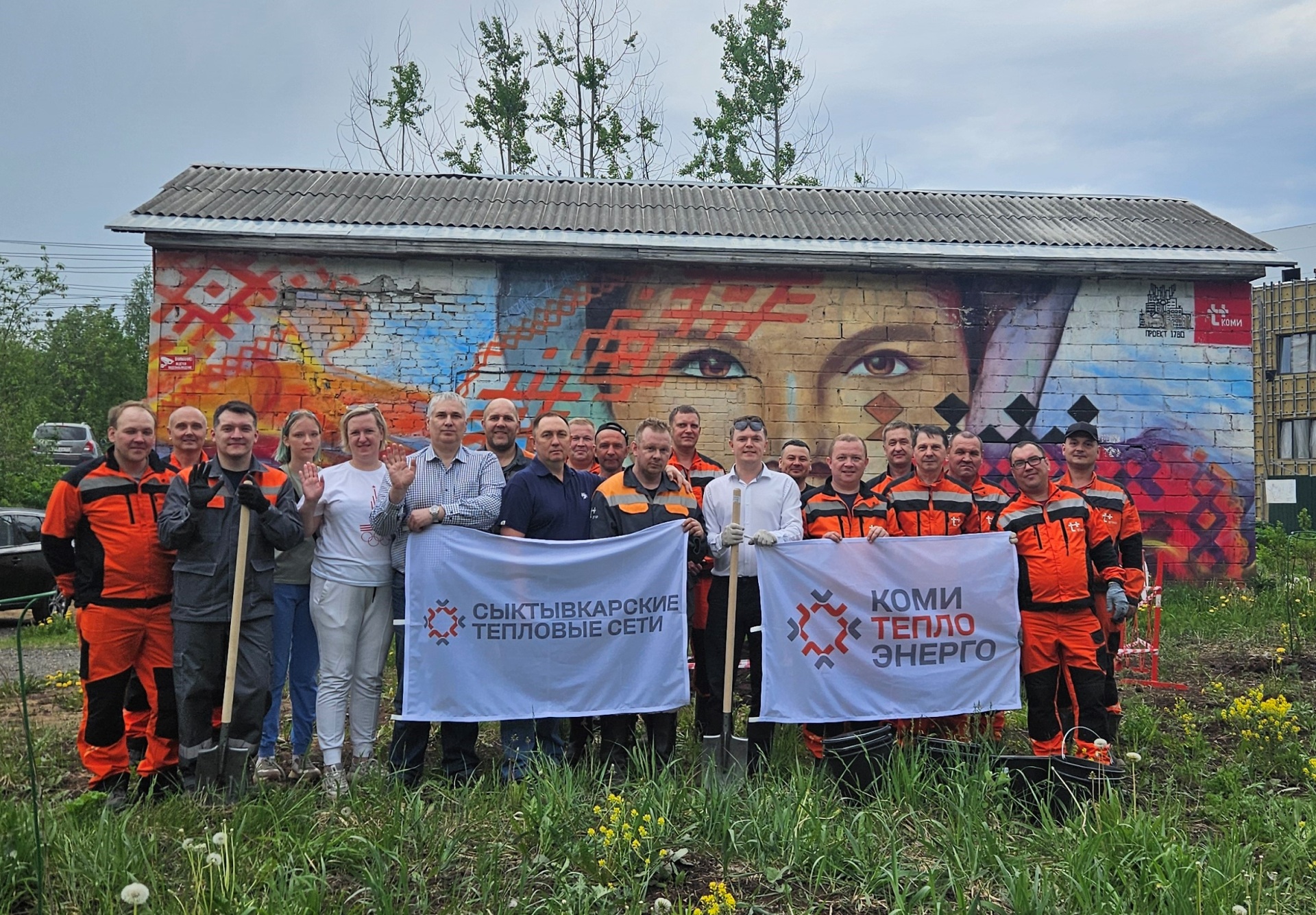 Акция "Аллея памяти" проходит в Сыктывкарских тепловых сетях. Энергетики высаживают деревья в честь 80-летия Победы в Великой Отечественной войне.