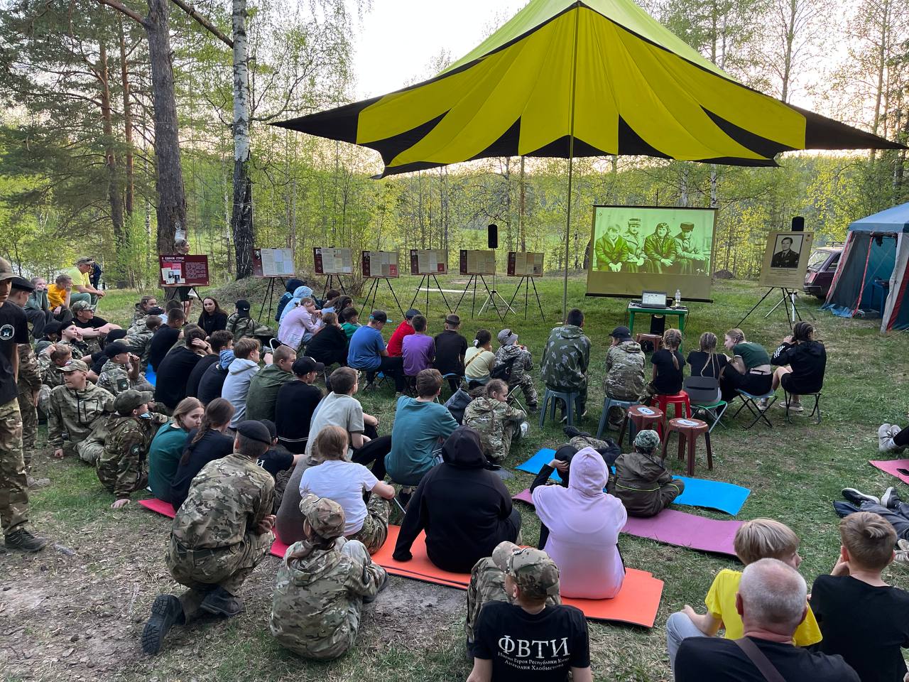 В завершении первого дня слета сотрудники регионального УФСБ провели для ребят урок мужества, где познакомили слушателей с основными этапами жизни и служебного пути Героя России Алексеева А.И., а также продемонстрировали планшетную выставку "В едином строю", рассказав о вкладе коми чекистов в Победу в Великой Отечественной войне.