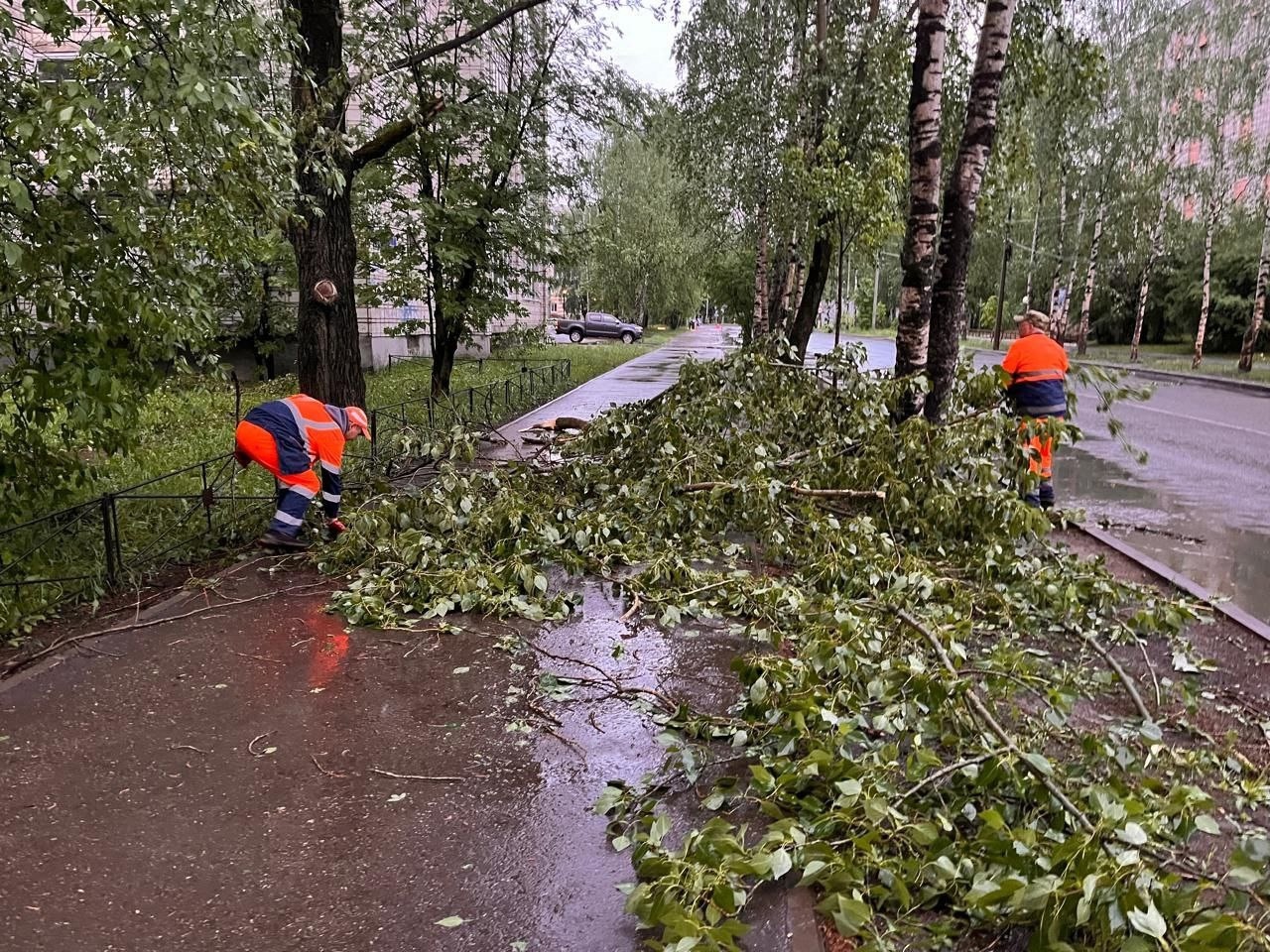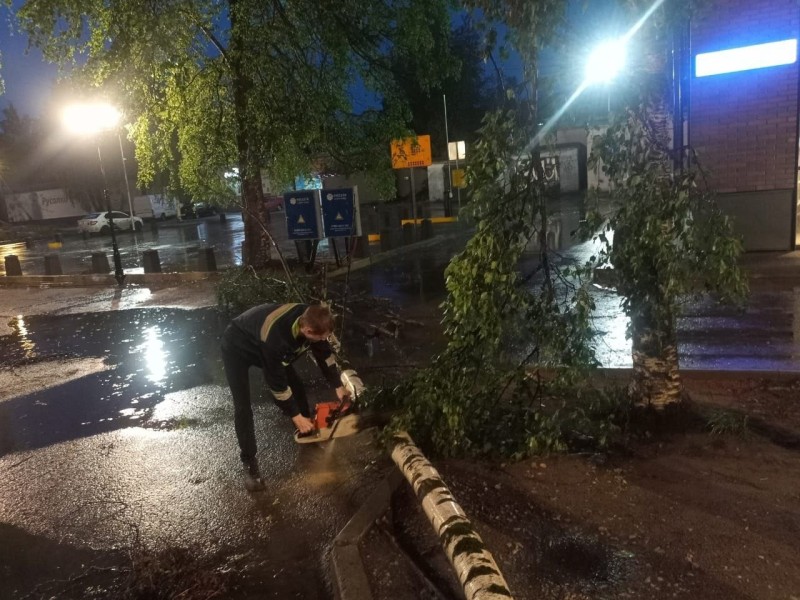 С ночи идёт расчистка улиц от поваленных деревьев, прочистка ливнёвок в некоторых местах — ночные смены сменили утренние, работы продолжаются.