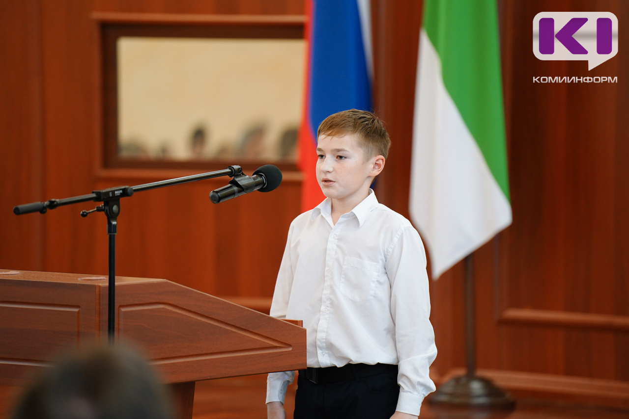 С ответным словом после вручения паспортов выступил учащийся школы №3 Печоры Артем Еремейчик. Он поздравил с вручением паспортов всех присутствующих школьников.